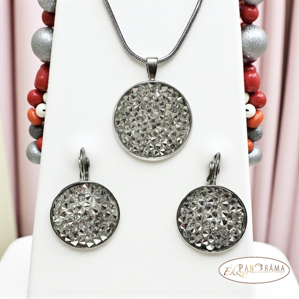Swanis® kristályos szett, orvosi acél szerelékekkel, különleges csiszolású, apró, eredeti kristályokkal
