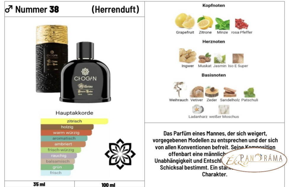 A CHOGAN 338 parfüm csomagolása és minősége is egyedi, a Chogan Group Spa terméke!