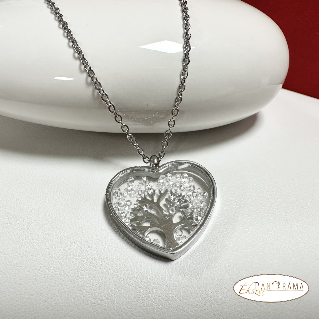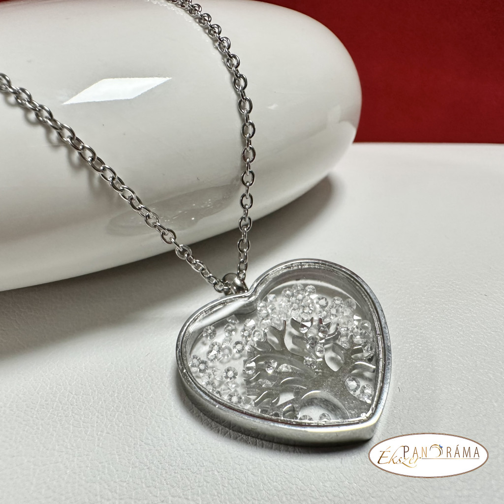 Nemesacél, nikkelmentes fehérarany színű szív medálos nyaklánc.
